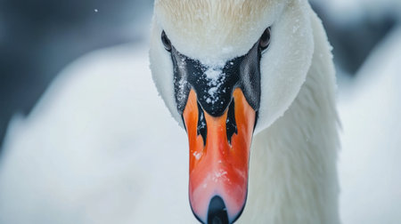 A stunning white swan gracefully poses against a soft background, embodying tranquility and elegance. This image perfectly captures the essence of nature's beauty.