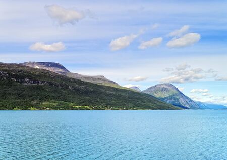 Norway mountains and landscapes on the islands Lofoten. Natural scandinavian landscape. Place for text or advertising.