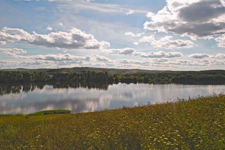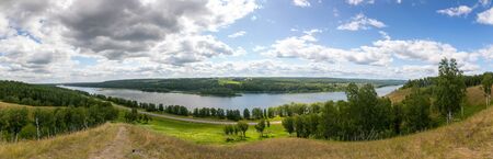 Summer river landscape, view of the river Tom from a height in Siberia, Russia