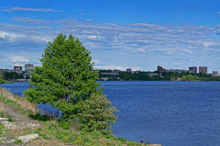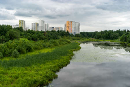Beautiful view of the lake and urban jungle in Nizhnevartovsk, Russia