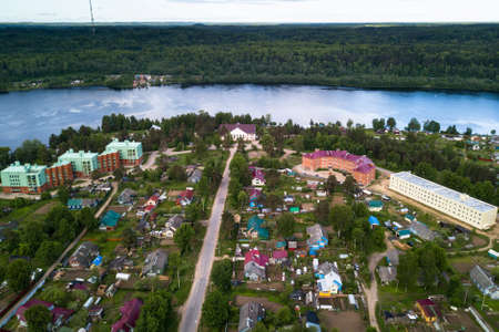 Bird's eye view of an urban-type settlement of Leningrad region, Russia.