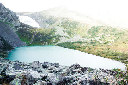 Beautiful mountain lake in the rocky summer day