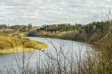landscape plains river on the forest background