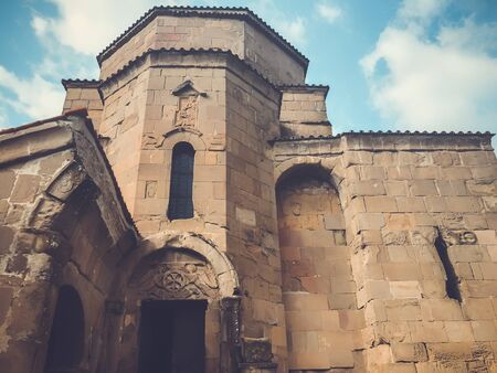 Close up view of the sixth century Georgian Orthodox Jvari monastery near Mtskheta Georgia.