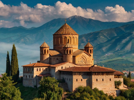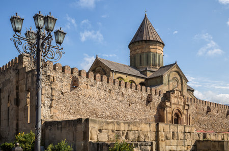 Beautiful view of the Svetitskhoveli Orthodox Cathedral in Mtskheta, Georgia.