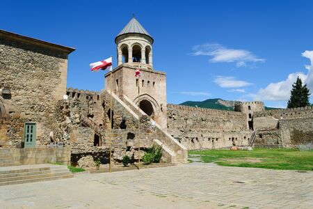 Yard and bell tower of Svetitskhoveli Cathedral in Mtskheta, Georgia