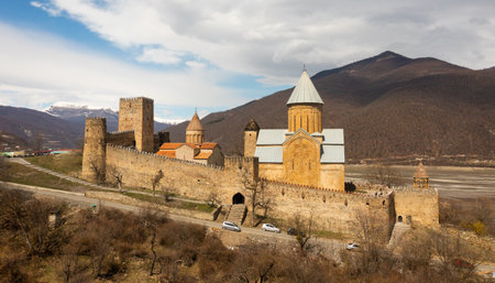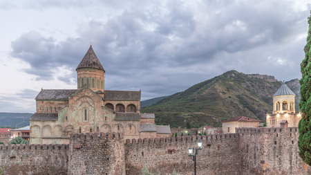 Beautiful view of the Svetitskhoveli Orthodox Cathedral (UNESCO World Heritage site) in Mtskheta, Georgia.