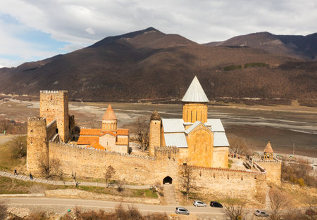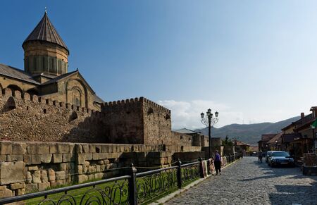 Mtskheta, Georgia - October 29, 2014: Svetitskhoveli Cathedral built in 11th century in Mtskheta. Mtskheta is one of the oldest cities of Georgia, located 20 km north of capital Tbilisi