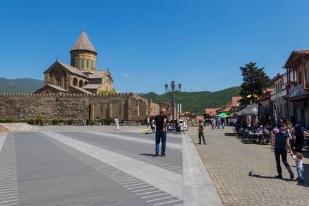 Mtskheta, Georgia - September 26, 2016: Central square near the Svetitskhoveli Cathedral. Mtskheta is one of the oldest cities of Georgia