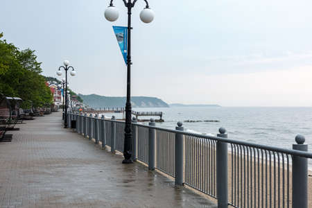 Embankment of the city of Svetlogorsk Russia in the autumn rainy afternoon.