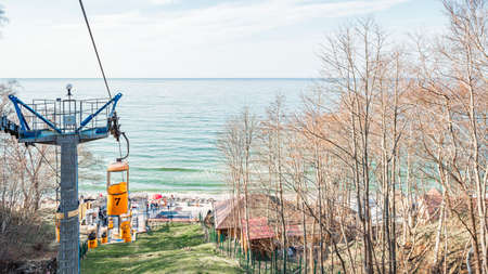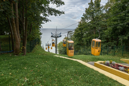 Svetlogorsk, Kaliningrad region, Russia - September 30, 2021: Small cable car to the sea and promenade