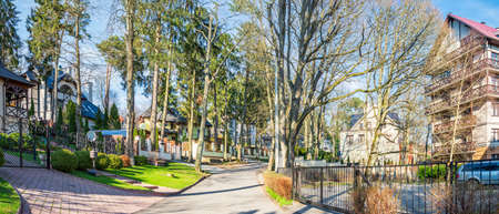 Wide panorama of Gorky Street with cottages in the resort town of Svetlogorsk