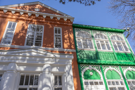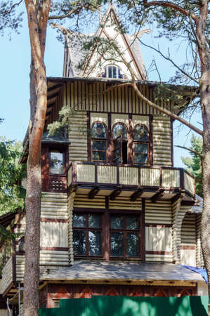 Lenin Street, 31, Svetlogorsk, Kaliningrad region, Russia, July 25, 2021. Architect Hugo Goering. A hunting lodge. An antique building with decorative wooden details.
