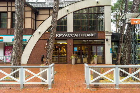 SVETLOGORSK, KALININGRAD OBLAST, RUSSIA - OCTOBER 13, 2017: The cafe entrance, the words - Croissant cafe.