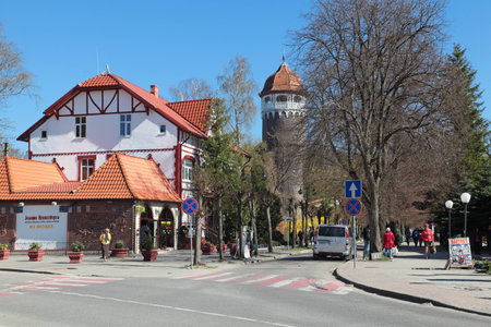 SVETLOGORSK, RUSSIA - MAY 06: Cityscape and view on Tower spas is the main landmark of the town Svetlogorsk (until 1946 - German Rauschen) on May, 06, 2013 in Svetlogorsk, Kaliningrad Oblast, Russia.