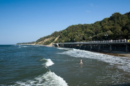Gdynia Orlowo pier in the morning. Baltic Sea, Poland