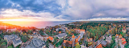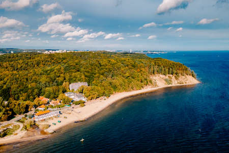 Seashore in a small resort town of Kolobrzeg in Poland, view from above