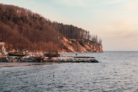 Natural cliff at the beach in Gdynia Orlowo. Baltic Sea, Poland