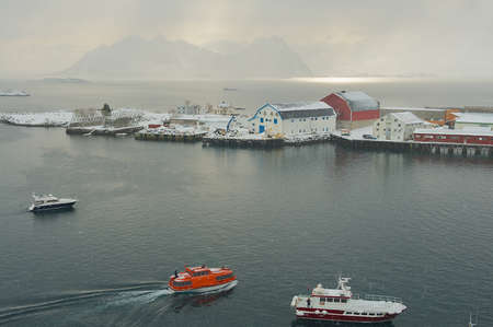 Svolvaer, Norway - March 26, 2011: Boats in the harbor of Svolvaer, Norway. Svolvaer harbor is the starting point for yearly held in March International cod fishing competition.