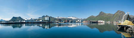 Henningsvaer, Norway - July 4, 2011: Henningsvaer fishing harbor on a sunny summers day. Henninsvaer is a popular tourist destination and a beautiful fishing village at Lofoten islands in northern Norway.