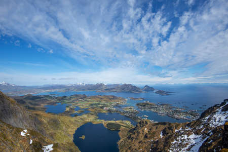 anoramic view of the coast and the islands at Svolvaer in the Lofoten in Norway