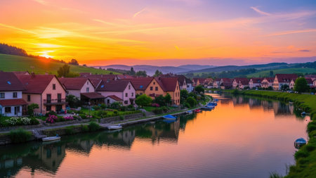Generative AI : Senhals village on Moselle river bank during a clear sky afternoon in CochemZell district Germany
