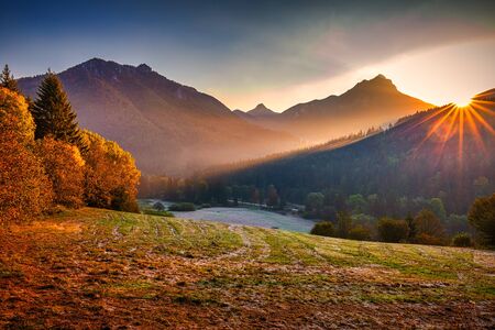 Autumn mountain landscape in the morning at sunrise. Mala Fatra National Park, Slovakia, Europe.