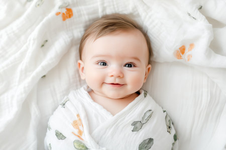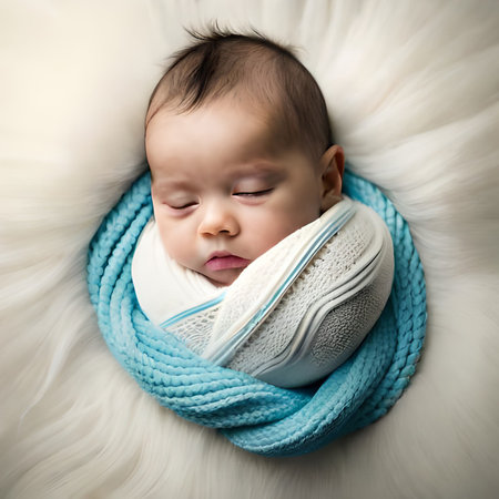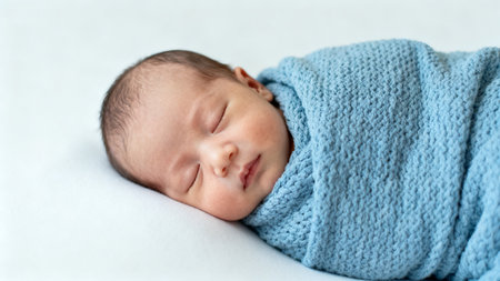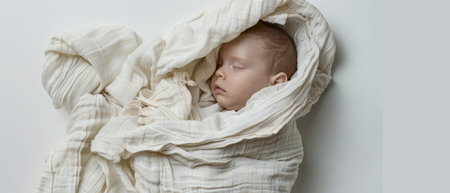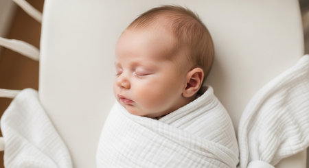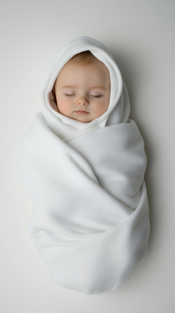 An adorable sleeping baby wrapped in a soft, neutral blanket, radiating tranquility and innocence. The perfect image for conveying warmth and love.