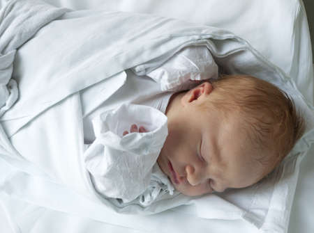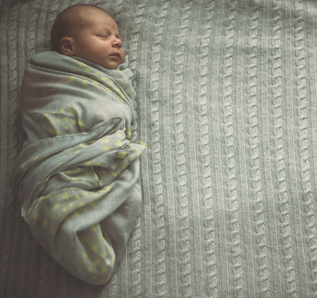 Newborn baby sleeping wrapped in blanket