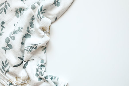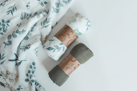 Two baby muslin blankets on white background, top view.