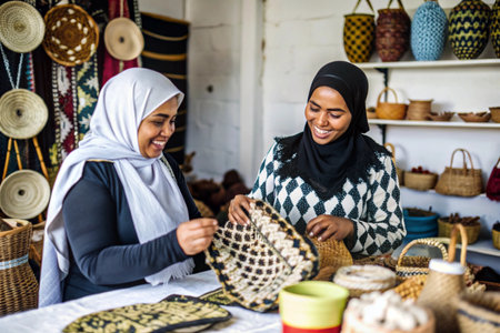 Two young muslim women in traditional clothes preparing for Eid al Fitr celebration