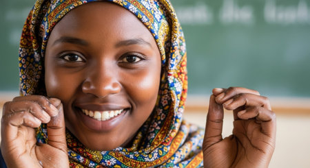 Portrait of a beautiful young african woman with hijab smiling at camera