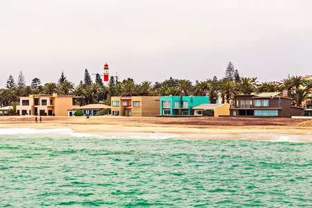 View from the sea on coastline of Swakopmund German colonial town, Namibia