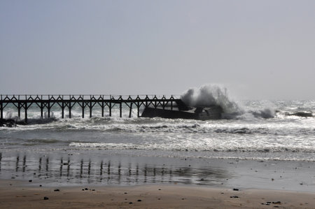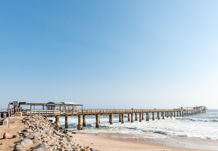 SWAKOPMUND, NAMIBIA - JUNE 30, 2017: The historic jetty, built 1905, in Swakopmund in the Namib Desert on the Atlantic Coast of Namibia.