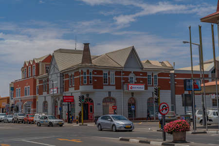 Swakopmund, Namibia - October 03, 2018: Old German colonial building. Center of the town.