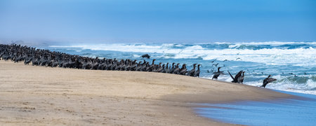 Namibia, thousands of cormorants on the shore, Skeleton coast
