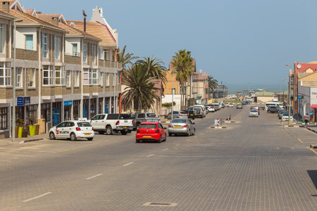SWAKOPMUND, NAMIBIA - October 8, 2014: Street in Namibian city Swakopmund. City was founded in 1892, by Captain Curt von Francois as the main harbour of German South West Africa.