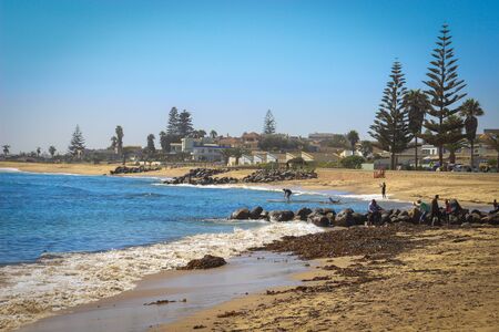 Swakopmund, Namibia - April 18, 2015: Coast of the Atlantic Ocean, waves on a sunny bright day. Swakopmund, Namibia.