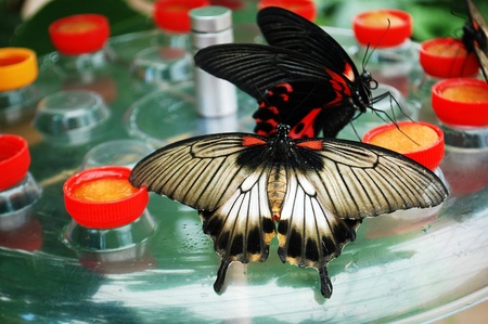 Pink Rose butterfly Pachliopta kotzebuea in EDINBURGH BUTTERFLY and INSECT WORLD.Selected focus.