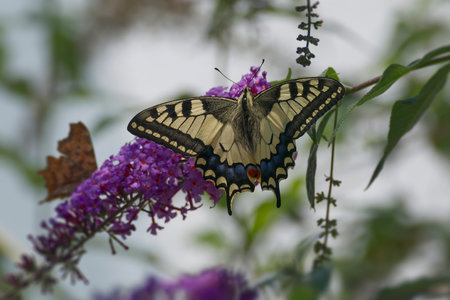 Old World Swallowtail or common yellow swallowtail (Papilio machaon) sitting on summer lilac in Zurich, Switzerland