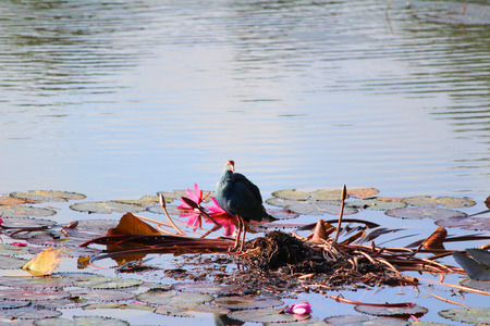 Purple Swamphen in wetlands Thale Noi, one of the country's largest wetlands covering Phatthalung, Nakhon Si Thammarat and Songkhla ,South of THAILAND.