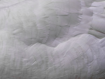 Close-up of delicate white feathers arranged, giving a sense of softness and purity
