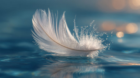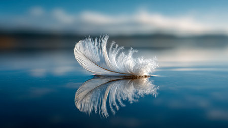 A delicate feather gently floating on calm water, embodying serenity and the beauty of nature.
