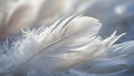 A serene closeup of delicate white feathers, representing peace, spiritual calmness, and divine grace. Ideal for themes of faith, God, tranquility, and religious inspiration.