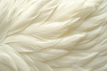 A detailed close-up shot of delicate white feathers, forming a tranquil background that embodies themes of peace, spirituality, and purity, representing faith in divine presence and religious
