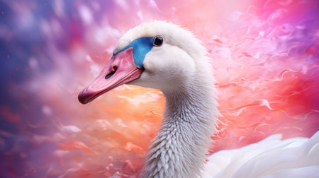 A stunning white swan gracefully poses against a soft background, embodying tranquility and elegance. This image perfectly captures the essence of nature's beauty.
