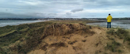 aerial drone view of the dunes of Tramore, Waterford Ireland. Sandhills natural park