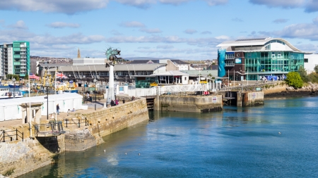 Overlooking the Historic Mayflower Steps and the Barbican Area of Plymouth Devon England UK