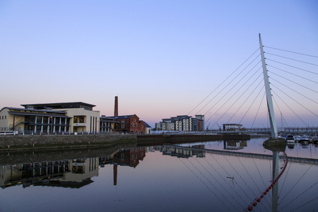 Evening at the River Tawe and the Millennium bridge in Swansea