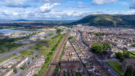 Editorial Port Talbot, UK - MAY 30, 2022: The Taibach area and houses near the Steel Works industry in the town of Port Talbot, South Wales UK
